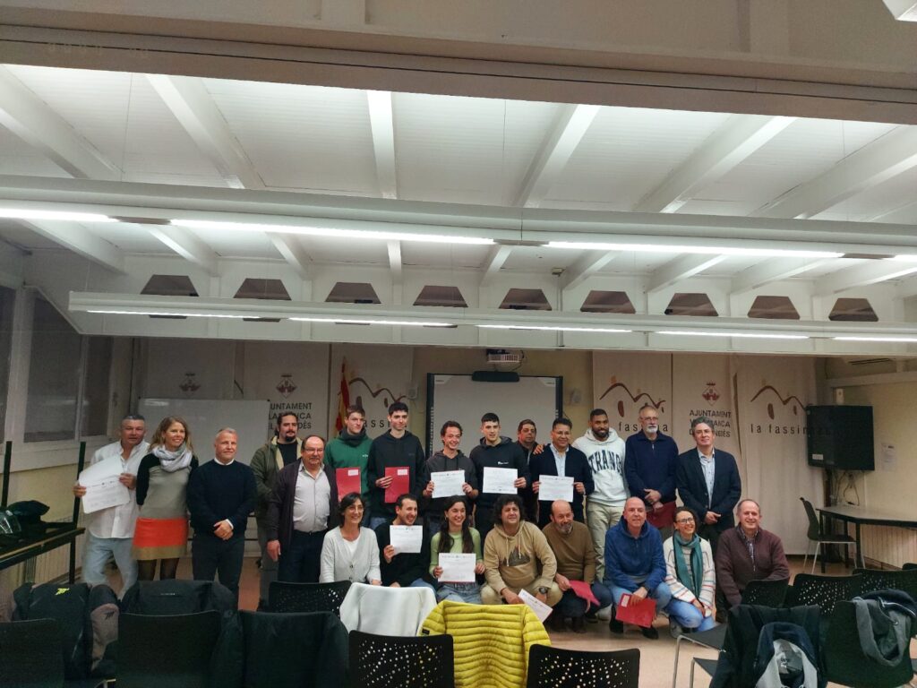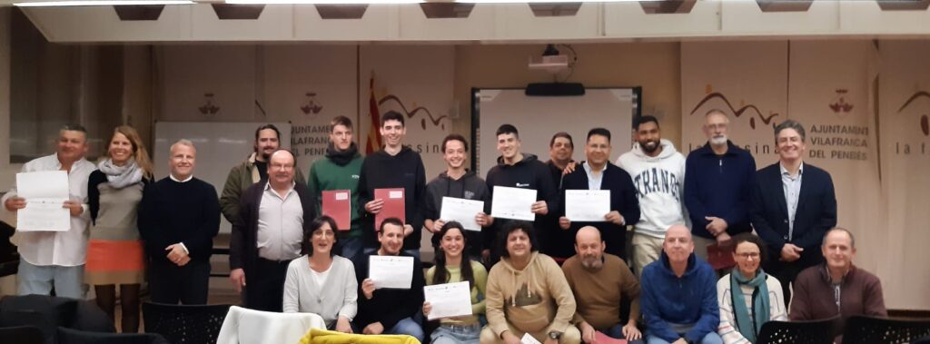 L’Ajuntament de Vilafranca del Penedès va efectuar el lliurament de diplomes a l’alumnat de la formació a mida d’auxiliars tècnics/ques en instal·lació de plaques solars. L’alcalde de Vilafranca Francisco Romero va estar acompanyat pel regidor d’Ocupació, Jordi Junyent i pel president del Gremi d’Instal·ladors de l’Alt Penedès, Martín Castillo.